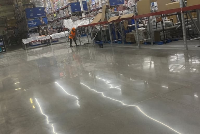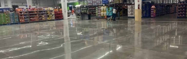 Más de 500,000 m² de superficies industriales pulidas en tiendas Walmart, Sam’s Club y Bodega Aurrerá.